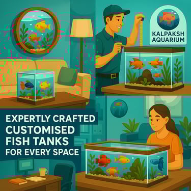 Transform your space with beautifully designed customised fish tanks from Kalpaksh Aquarium. We create tailor-made aquariums to suit homes, offices, restaurants, and showrooms—crafted to your size, style, and budget. Our team handles everything from design consultation and installation to maintenance, ensuring your tank is not just an aquarium, but a living piece of art. Whether you want a wall-mounted tank, a coffee-table design, or a themed aquatic setup, Kalpaksh Aquarium brings your vision to life with expert care.